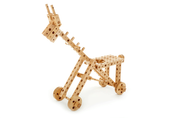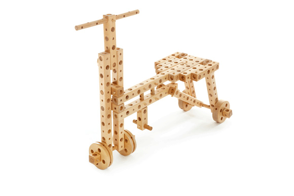 Die Grundvariante des Baukastens, die als die erste der drei aktuellen Varianten vermarktet wurde. Es handelte sich um ein Testprodukt, das bei uns sowie im Ausland so erfolgreich war, dass wir beschlossen haben, weitere Baukasten-Modelle herzustellen - PONY Mini und PONY 02. Aus dem Baukasten PONY 01 kann man z. B. ein Dreirad, einen Roller, ein PONY, ein Wagen, einen Kran, eine Mühle, eine Lok oder anderes Spielzeug bauen, das größer ist als bei der Verwendung von PONY Mini. Ihre Erzeugnisse verfügen über ausreichende Tragfähigkeit, um die Kinder ganz nach ihrem Geschmack toben zu lassen.
